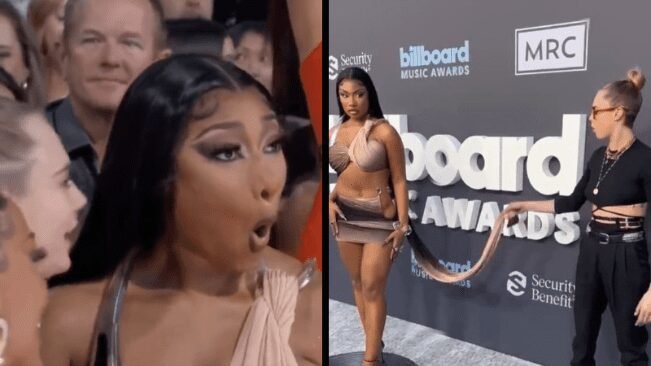 Os espectadores começaram a usar a plataforma de mídia social de sua escolha quando viram Delevingne mexer no vestido de Megan enquanto a rapper posava no tapete vermelho. Em outro ângulo, a mega modelo podia ser vista admirando Megan enquanto espiava de uma parede.