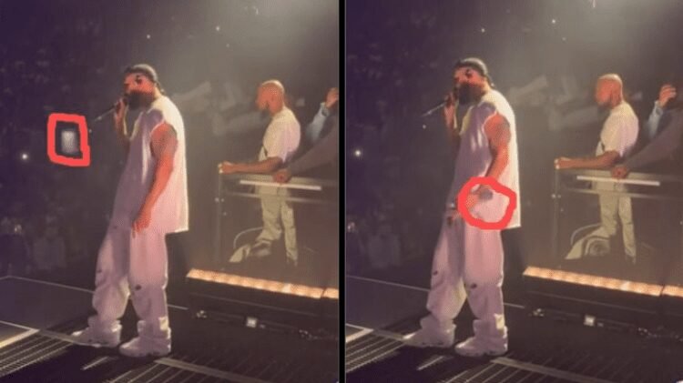No entanto, um acontecimento chamou a atenção dos fãs e também do próprio artista. Como se tornou cada vez mais comum, alguém jogou o telefone no palco enquanto Drake estava se apresentando. Embora muitos artistas provavelmente levassem as coisas para o lado pessoal, Drizzy não perdeu o foco. Mesmo quando o telefone o atinge no braço e caí do palco, ele não perdeu a concentração.