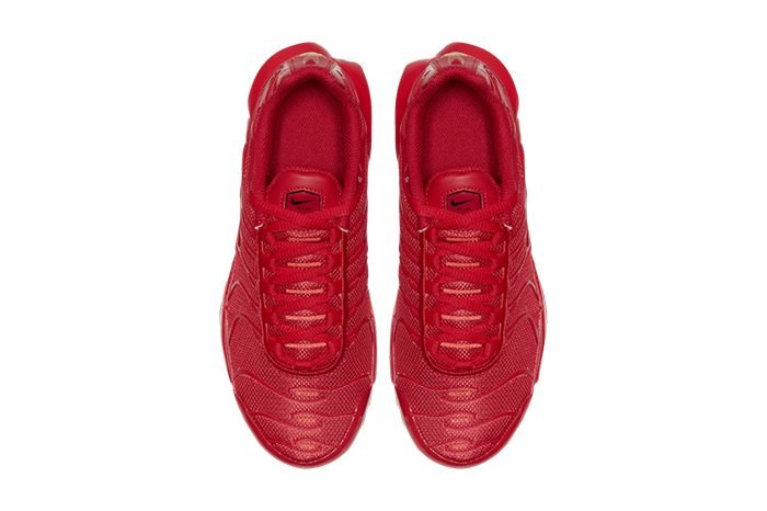 O mais recente sapato para obter o tratamento: ninguém menos que o Air Max Plus, que foi literalmente todo pintado de vermelho, em um modelo que deve fazer sucesso.