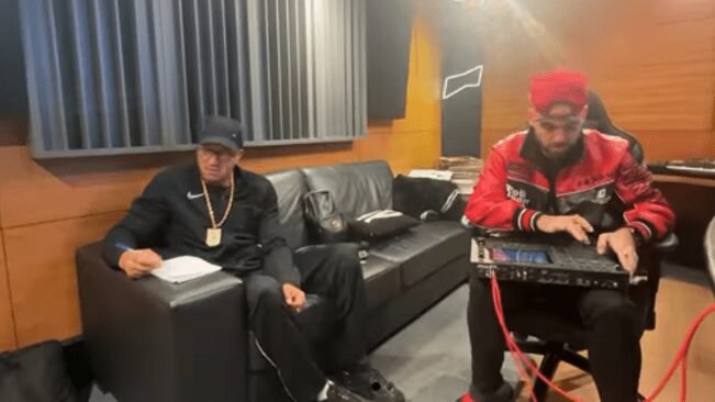 Numa retrospectiva de final de ano, o super renomado produtor do Rio de Janeiro compartilhou em suas redes sociais os bastidores do estúdio de quando esteve com o icônico Mano Brown para gravarem a parte dele nesse projeto. No vídeo quem foi postado aparece Brown com um caderno e uma caneta compondo enquanto Papatinho está fazendo o beat