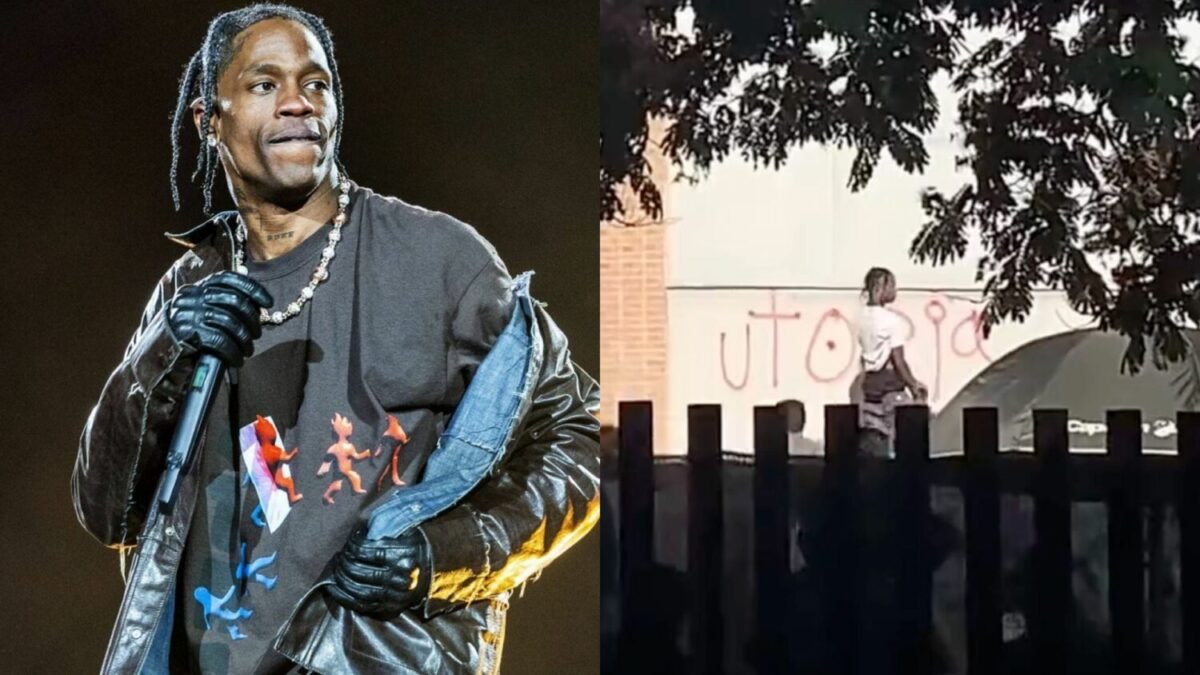 Travis Scott foi flagrado pixando “Utopia” nas ruas de uma cidade na Espanha.